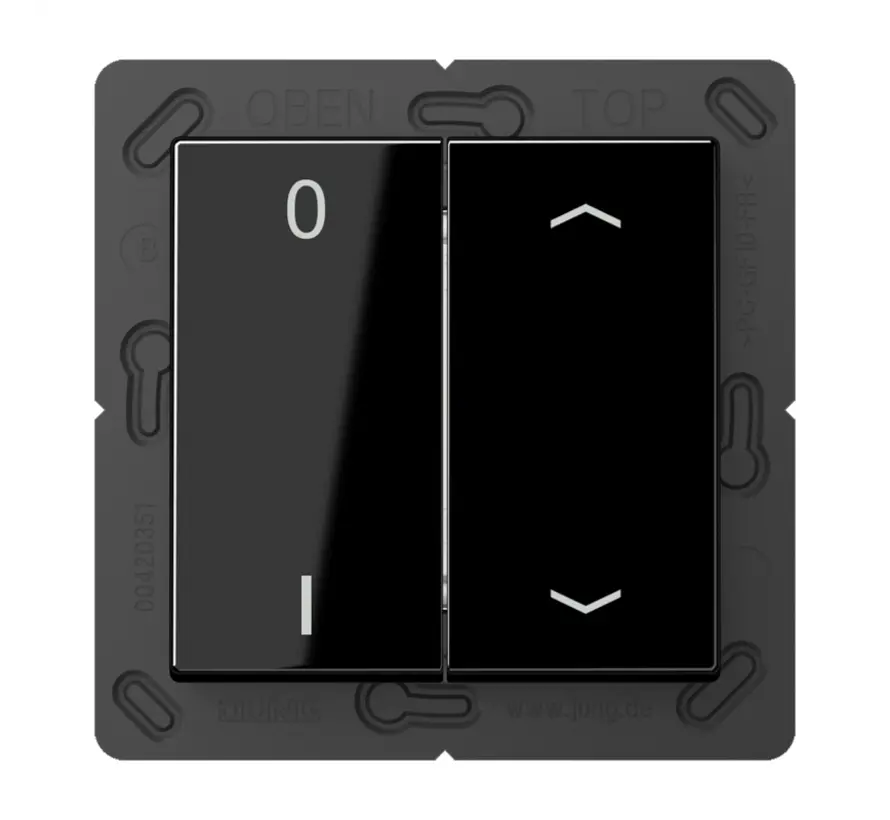JUNG EnOcean Funk-Wandsender 4-Kanal mit 0–1 und Pfeilsymbolen A-range schwarz glänzend (ENO A 595 P01 SW)